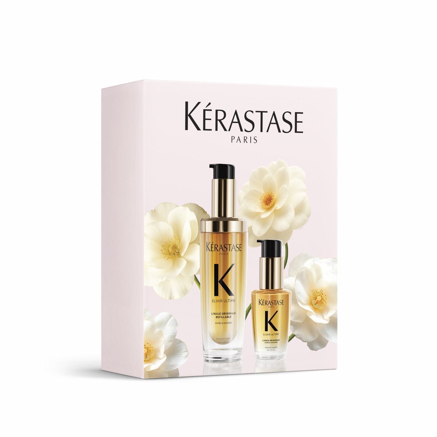 Indulge in the ultimate luxury with Kérastase Elixir Ultime. Infused with wild Camellia and French Camellia oils, each drop offers a luxurious treatment suitable for all hair types. This iconic refillable hair oil deeply nourishes, strengthens, and protects hair fibre while imparting shine to even the most unruly, frizzy hair. It also doubles as a thermal protector during styling. What's inside the coffret? • Elixir Ultime, 75ml and 30ml A beautifying, versatile leave-in hair oil with a lightweight formula and advanced anti-frizz performance. It’s now time to indulge in the ultimate haircare ritual and treat yourself and your loved ones with our exclusive giftsets collection.
