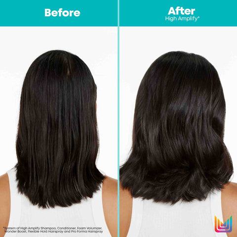 *With system of High Amplify Shampoo, Conditioner, and Proforma Hairspray vs. unwashed hair.
