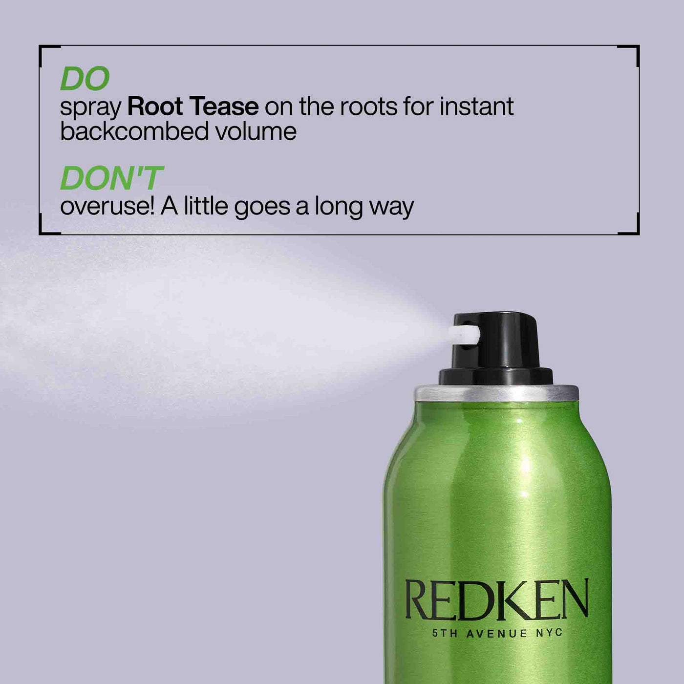 Redken's Root Tease Backcombing Spray is a medium control hairspray that provides long-lasting root lift for a teased, texturized, matte finish. With three-in-one bottle benefits of volume, texture, and control, the root-targeting spray nozzle freezes lift at the roots to add instant body to any style for an easy backcombed, voluminous, teased effect.