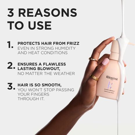 Frizz-Glaze Cream By Kérastase is an anti-frizz styling cream for thick, frizzy hair. It's specially formulated with glycerin, hyaluronic acid, glycolic acid and wild rose in oil to deliver 4 days frizz-less blow-out even in high humidity and heat conditions.