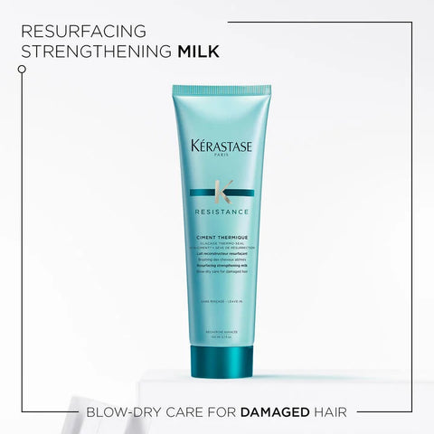 Ciment Thermique is a thermo-protecting blow dry cream for weakened and damaged hair. It instantly reconstructs, reinforces and tones the hair fibre.